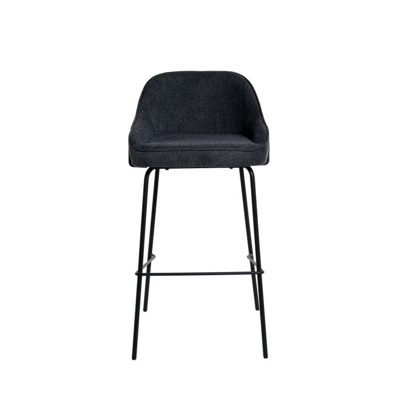 Taburete alto LOUIS gris oscuro,cocinas o bares. Asiento tapizado en tela gris oscuro y estructura de metal moderna.Respaldo integrado con reposabrazos..