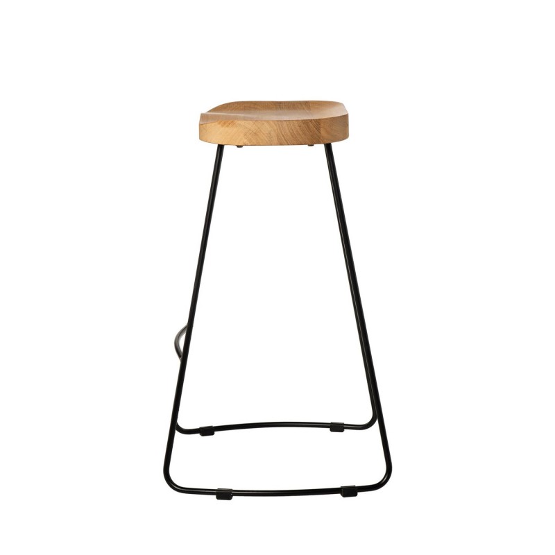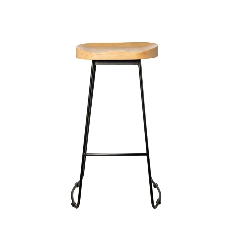 Las patas de este taburete están fabricadas en metal de color negro y presentan una sutil curvatura hacia dentro, lo que no solo añade un toque de modernidad, sino que también asegura una estabilidad excepcional en todo momento.