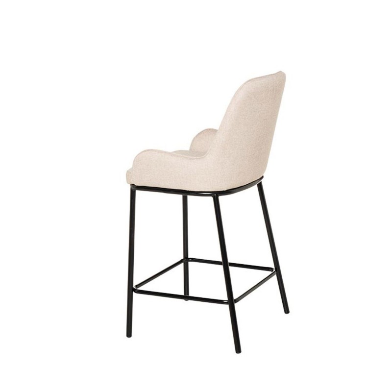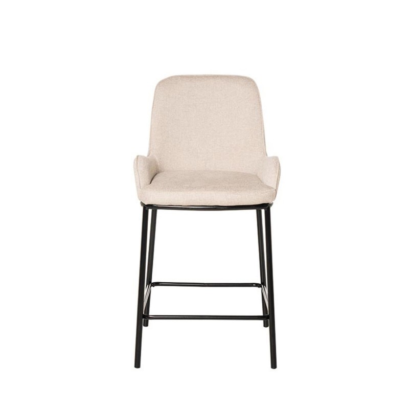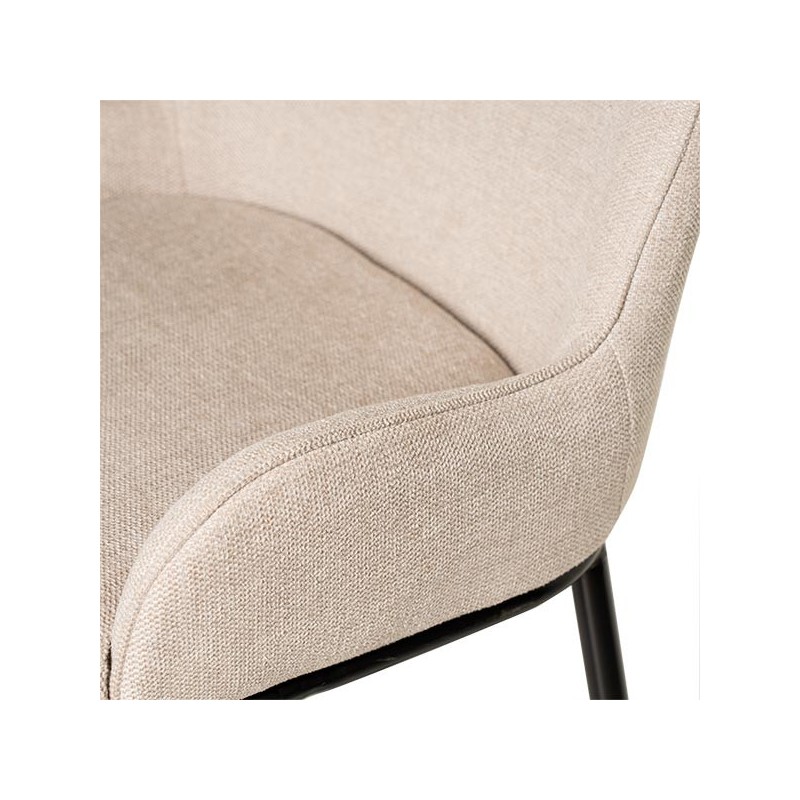 Taburete bajo MILTON beige: elegante y sofisticado, ideal para cocinas y comedores. Tapizado suave en beige, patas de metal negro para durabilidad.