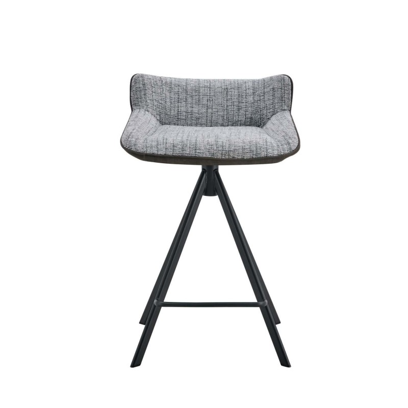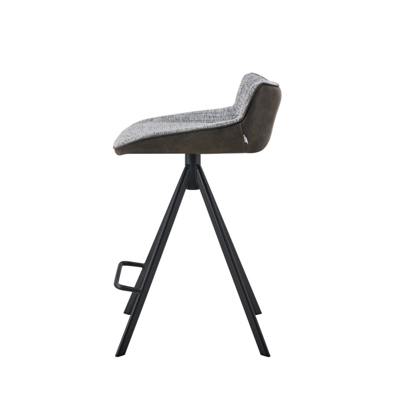 La base de este taburete está formada por patas de metal negro ligeramente inclinadas hacia afuera, lo que proporciona una base sólida y estable. Además, el reposapiés no solo añade un toque estético, sino que también refuerza la estructura del taburete, garantizando su durabilidad para un uso diario prolongado.