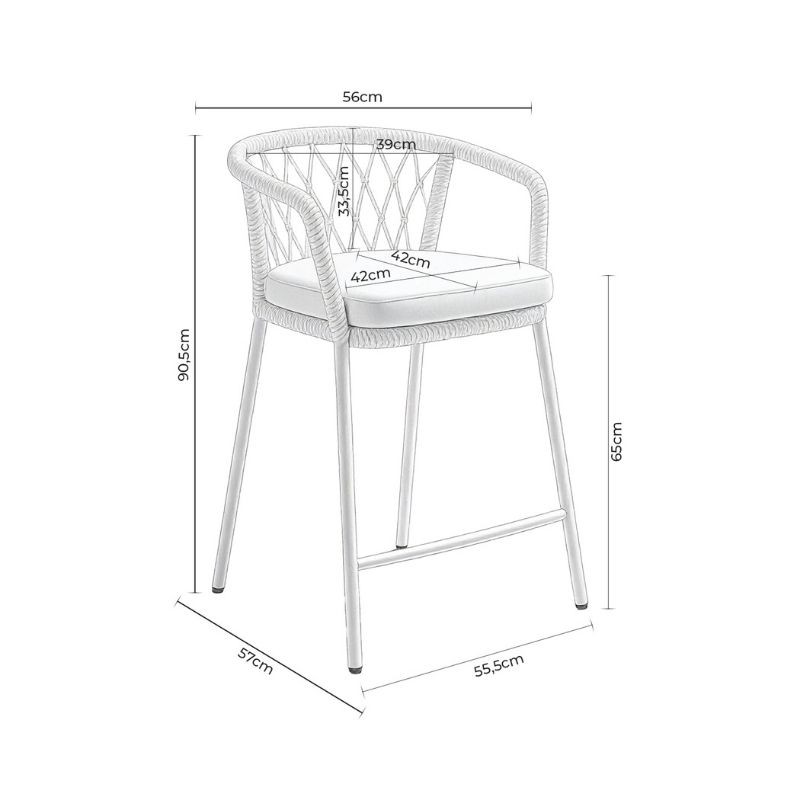 El taburete de exterior EDWIN combina elegancia y comodidad con un diseño pensado para destacar. Su respaldo curvo, envuelto en cuerda entrelazada, aporta un sutil toque decorativo mientras proporciona un soporte ergonómico que envuelve suavemente la espalda.