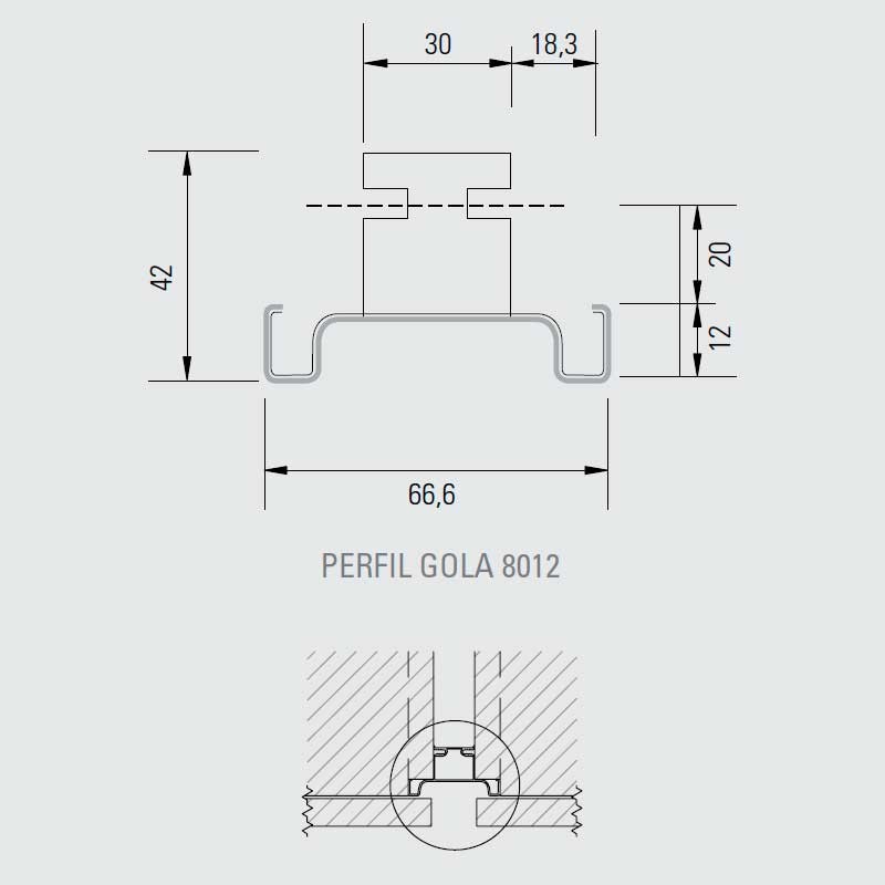 Este perfil gola intermedio se instala en la vertical de dos muebles juntos con puertas en las que cada una abre hacia una dirección, posibilitando que tiremos de una u otra puerta para su apertura.