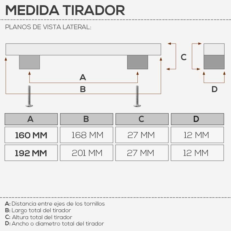Tirador metálico de zamak acabado negro mate modelo 0160E para muebles de cocina. Incluye los tornillos necesarios para su montaje.