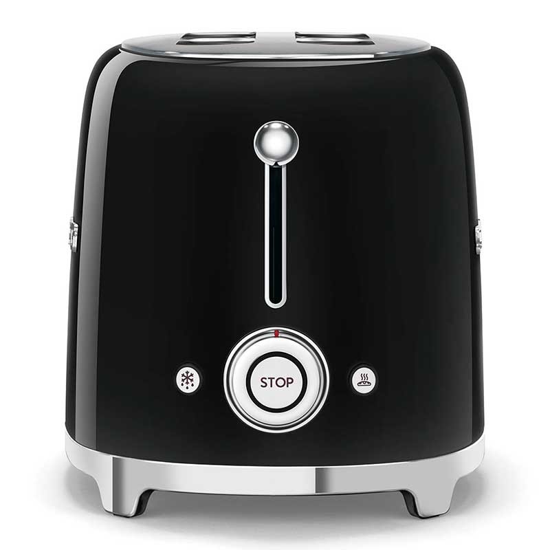 Tostadora Smeg 50's Style con cuerpo en acero inoxidable color negro brillo con 6 niveles de calentamiento y 2 ranuras para 2 tostadas.
