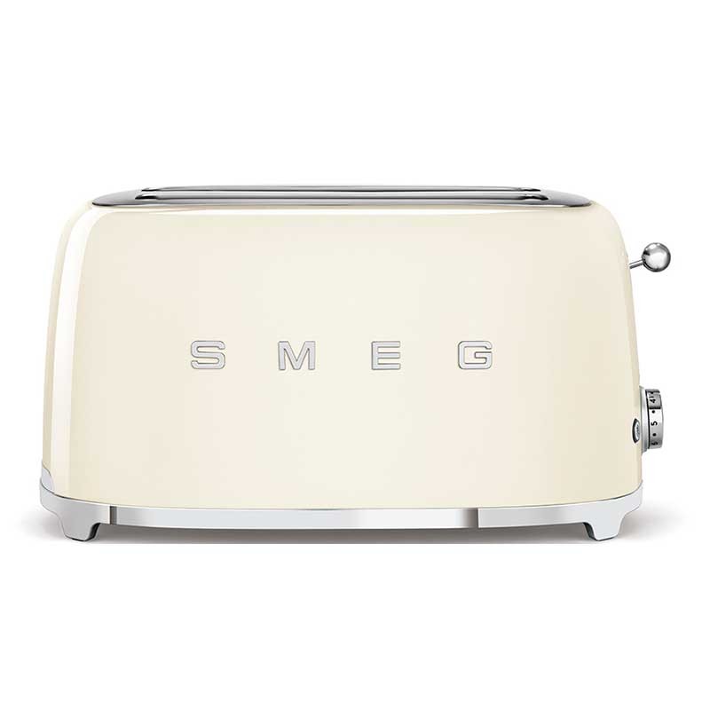 Tostadora Smeg 50's Style con cuerpo en acero inoxidable color crema brillo con 6 niveles de calentamiento y 2 ranuras para 4 tostadas.