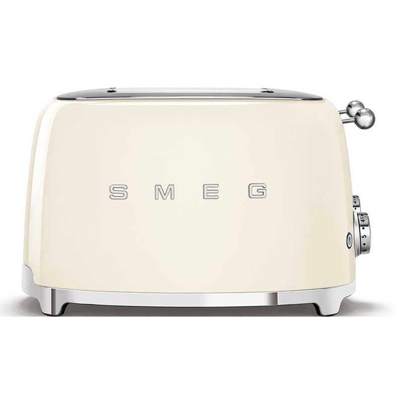 Tostadora Smeg 50's Style con cuerpo en acero inoxidable color crema brillo con 6 niveles de calentamiento y 4 ranuras para 4 tostadas.