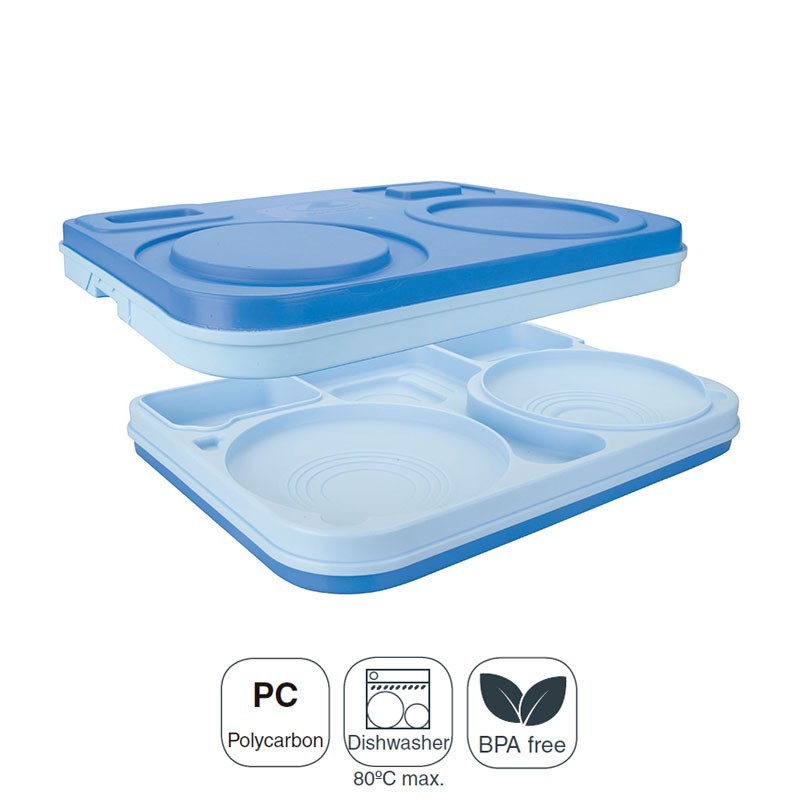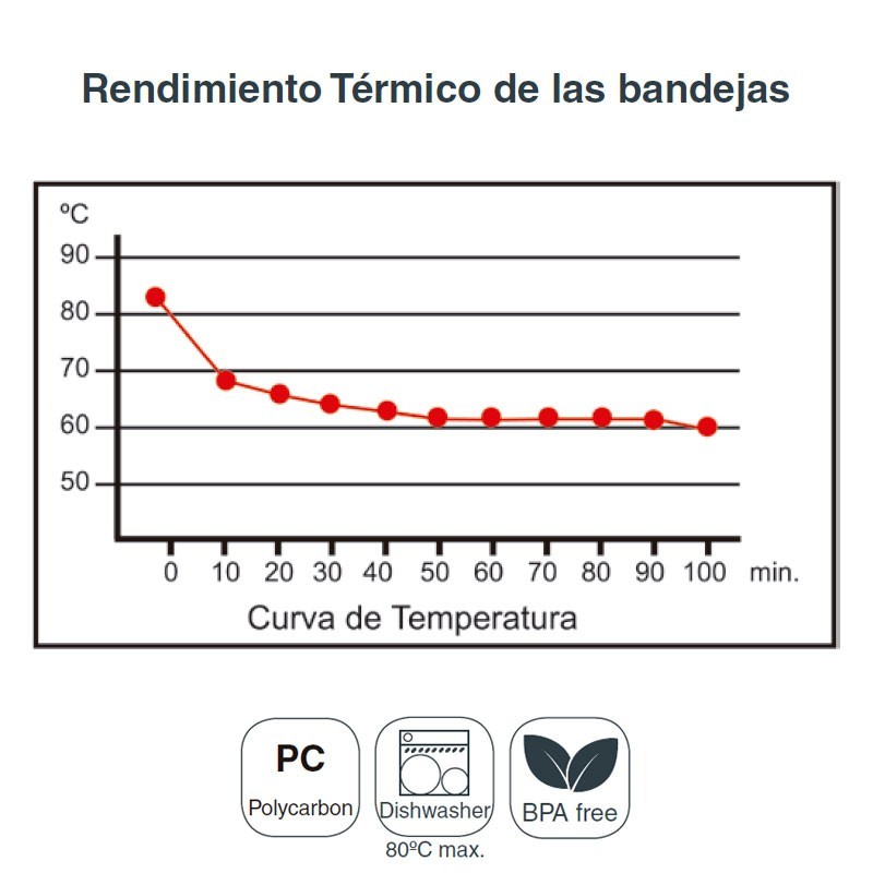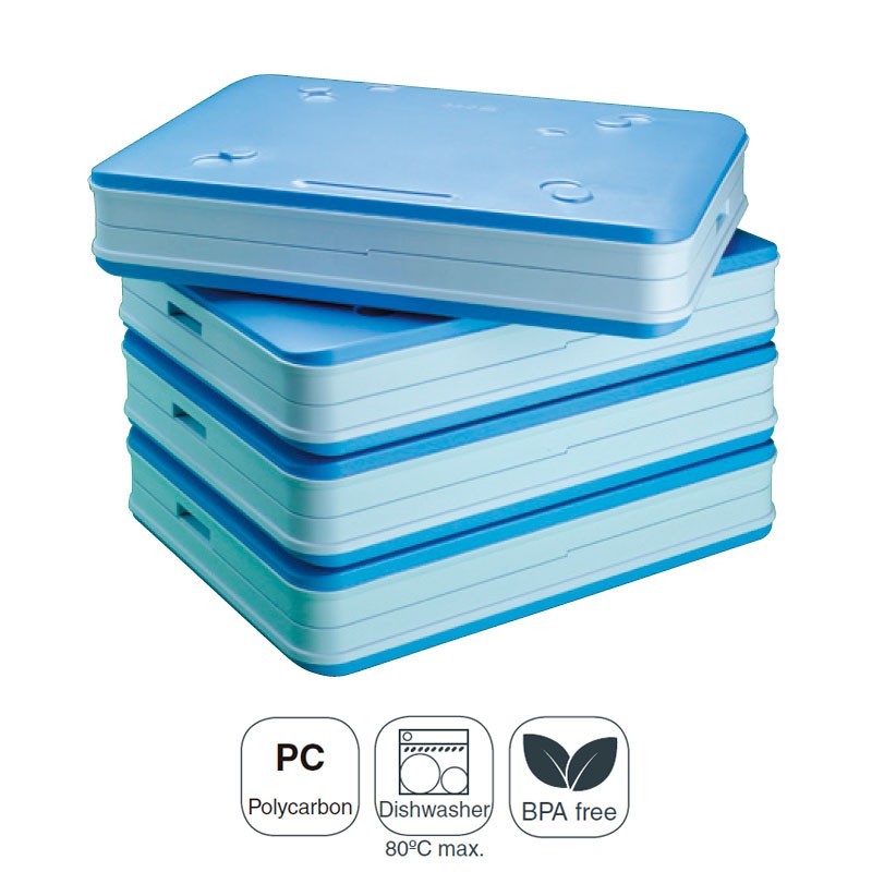 Bandeja isotérmica B1 de 55x38 cm fabricada en policarbonato destinada a la distribución de comidas en hospitales, residencias, etc.