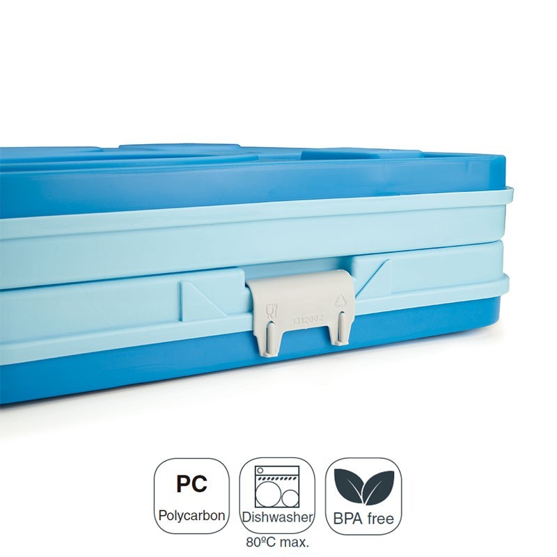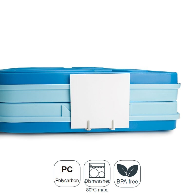 El cierre portafichas hérmético para bandejas isotérmicas es ideal para poner información sobre el paciente al que va destinada la comida de un hospital o residencia, o para dar información sobre el menú que contiene en su interior.