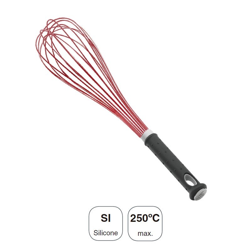 Batidor de silicona indeformable con mango FIBREGLASS ergonómico ideal para elaboraciones de repostería. Disponible en varios tamaños.