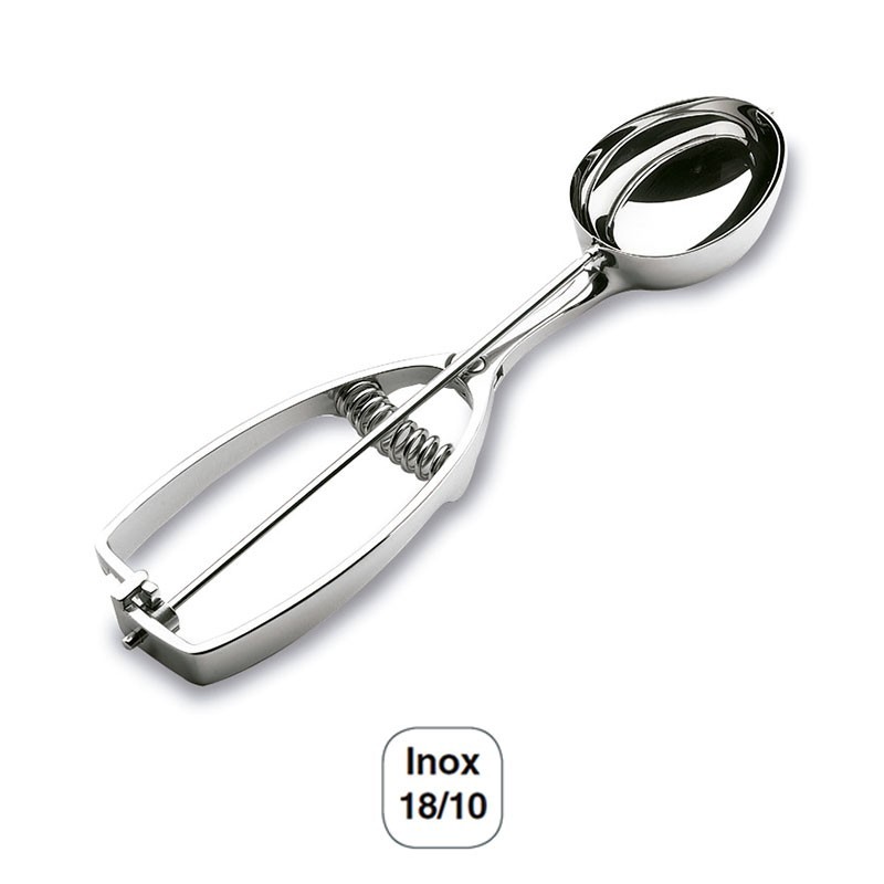 Racionador profesional ovalado para bolas de helado fabricado en acero inoxidable 18/10 de alta calidad y excelente resistencia a la corrosión. Disponible en varias medidas.