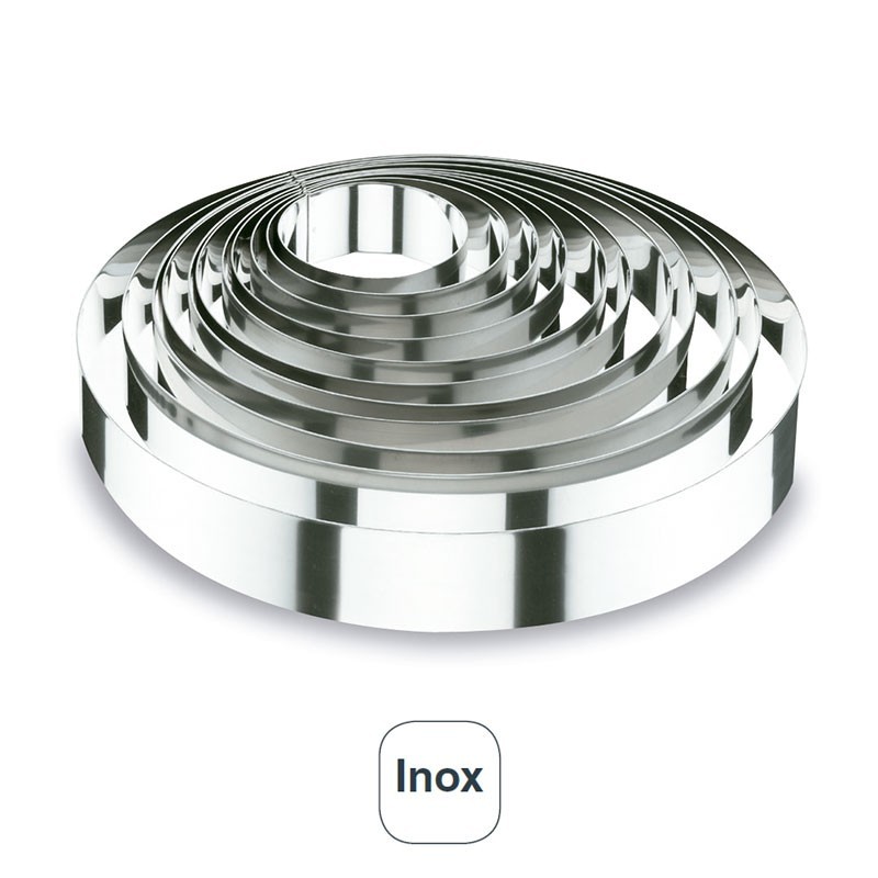 Aro redondo de acero inoxidable de 3,5 cm de altura para emplatar guarniciones, ensaladas, postres o montar platos como un steak tartar o similares. Disponible en 2 diámetros.
